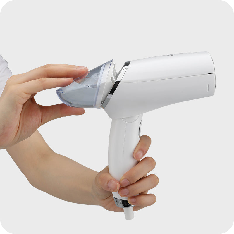 - 2. Press the RED BUTTON on the head of the handheld steamer.